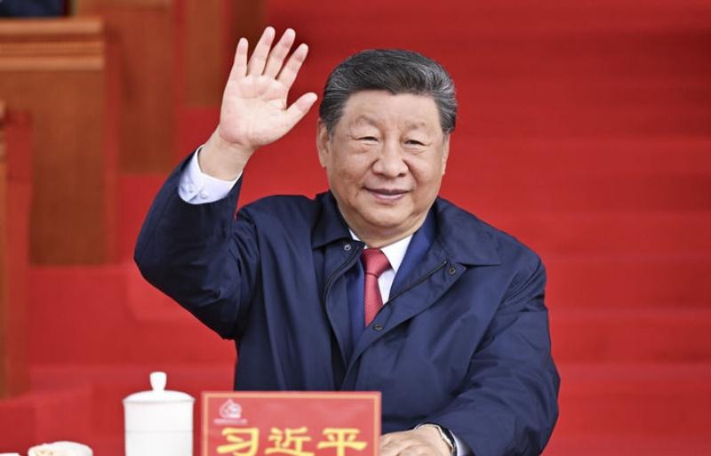 上午10时许,在欢快的乐曲声中,习近平等领导同志走上主席台,全场响起长时间的热烈掌声。