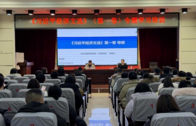 12月19日下午,县委宣传部组织开展《习近平经济文选》(第一卷)专题学习培训活动。全县各党委及相关单位工作人员参加培训。