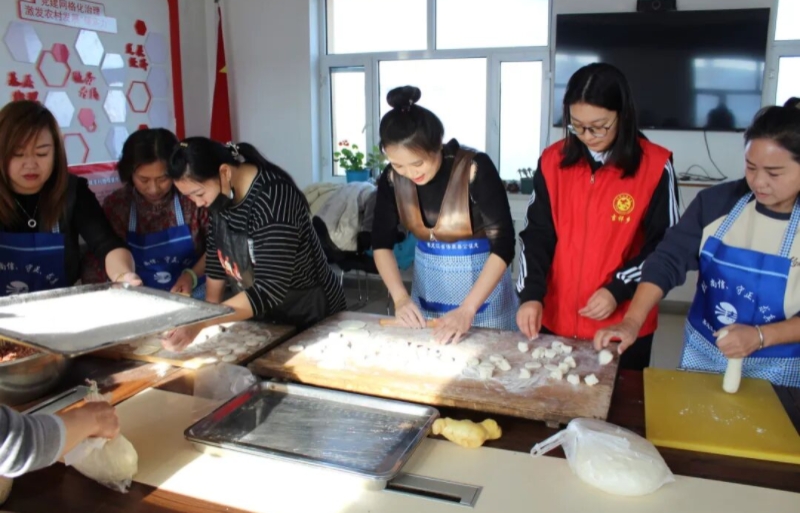 在双丰村村委会,村“两委”成员和志愿者们分工协作、默契配合,揉面、擀皮、调馅等各个环节有条不紊。一双双巧手将真情与爱心包裹进饱满的饺子里,现场充满喜庆温馨,擀皮的节奏与交流的笑声交织相融。这场热闹的“包饺子”活动,进一步拉近了干群距离、增进了邻里情谊。