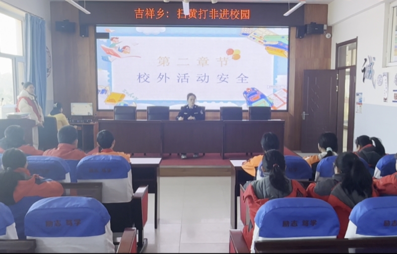 近日,吉祥乡新时代文明实践所联合乡司法所等部门走进吉祥乡学校,共同开展“扫黄打非”进校园主题宣传活动,同步普及校园安全知识,为同学们送上一堂生动实用的“安全教育课”。