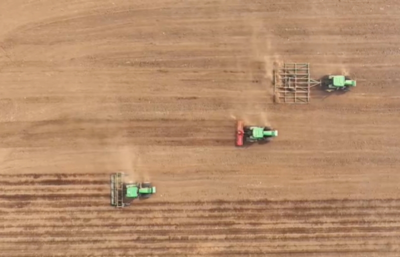 在香兰镇安兴粮食种植专业合作社的旱田地块,由旋地机、起垄机、镇压器组成的“春耕铁三角”往来穿梭、协同作业,一派忙碌景象,“三机联动”让碎土、起垄、镇压一气呵成,构成一幅智能春耕的生动图景。