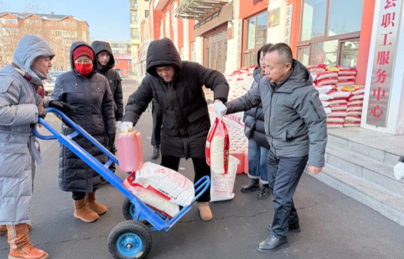 为确保物资发放过程高效有序,采取分批次、有组织的发放方式,由现场工作人员依序发放。职工们在工作人员的指引下,有序登记、领取物资。一件件实实在在的物资,一句句暖心鼓劲的话语,让这个冬日充满了融融暖意。