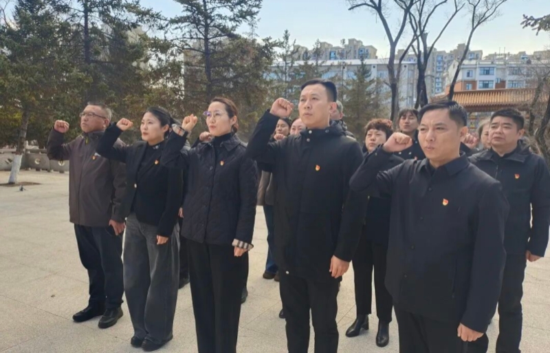 随后,党员干部们面向鲜红的党旗,举起右拳,重温入党誓词。铿锵有力的誓言彰显了融媒干部不忘初心、牢记使命的坚定信念。宣誓结束后,全体人员怀着无比崇敬之情瞻仰了烈士墓,深切缅怀革命先烈的丰功伟绩和崇高精神。