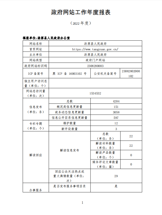 汤原县人民政府网站工作年度报表