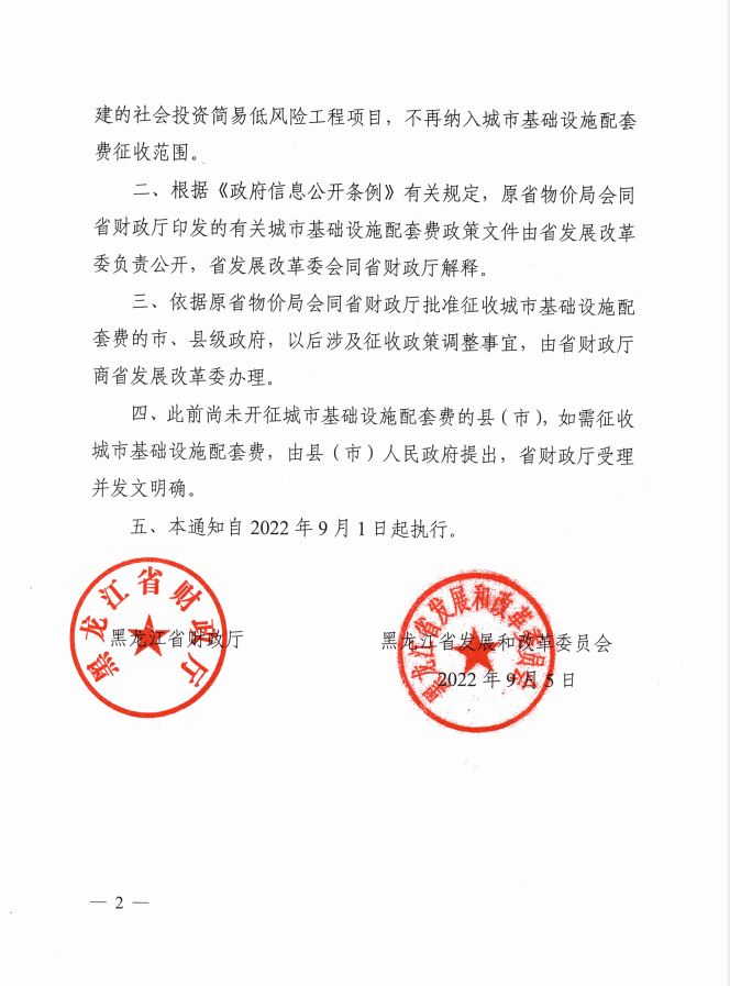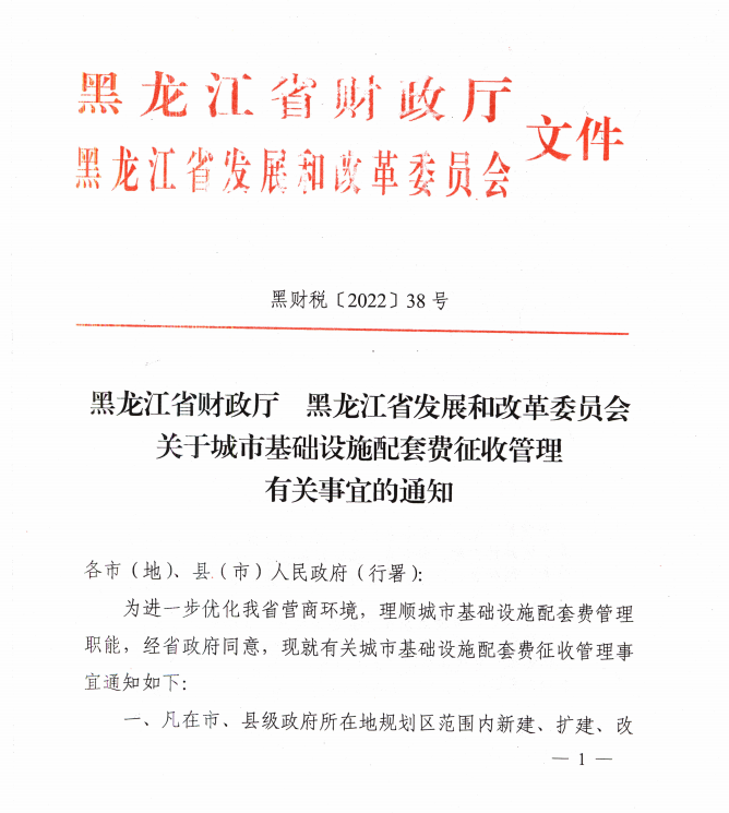 黑龙江省财政厅 黑龙江省发展和改革委员会关于城市基础设施配套费征收管理有关事宜的通知