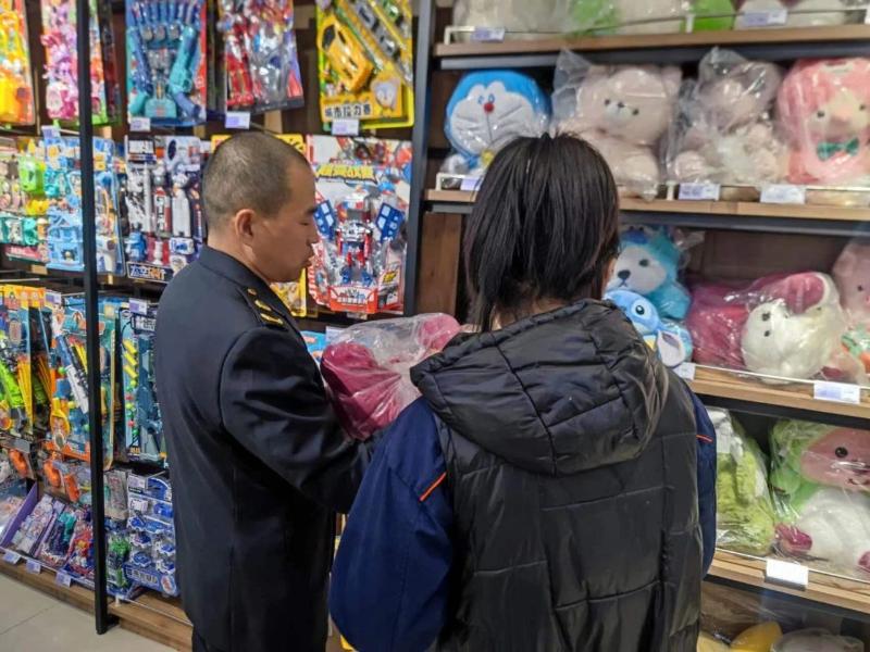 执法人员深入校园周边小商店、文具店、儿童玩具店等重点区域,重点对炸包、萝卜刀、笔中刀、泡大珠、鼻吸能量棒等“网红”玩具和圆珠笔刀、磁性文具等危险文具用品开展检查,查看产品是否正确标注厂名、厂址、警示说明,外包装是否配有中文说明等。同时,督促饿了么、美团外卖平台严格审核平台入驻经营者资格,平台内销售的儿童玩具和学生用品必须符合保障人身、财产安全要求。督促经营单位落实质量安全主体责任,严把进货渠道,完善进货台账,提升守法经营意识,杜绝不合格儿童产品进入流通市场。截至目前,共出动执法人员50余人次,检查销售单位22家,部分产品标识不全,已现场责令整改。