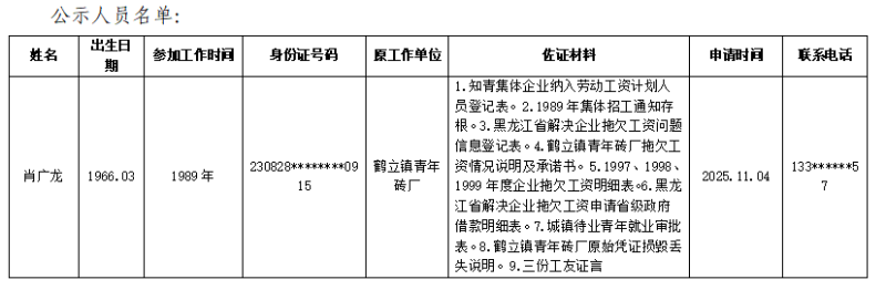 现将申请补办档案人员第二十四批公示名单在汤原县政府网站进行公示,公示期限为五个工作日(2026年1月12日至2026年1月16日),公示期满后,对无异议的人员,我局将相关档案移交档案室统一保管,请各企业及企业主管部门予以配合监督。监督举报电话:0454-7387013。