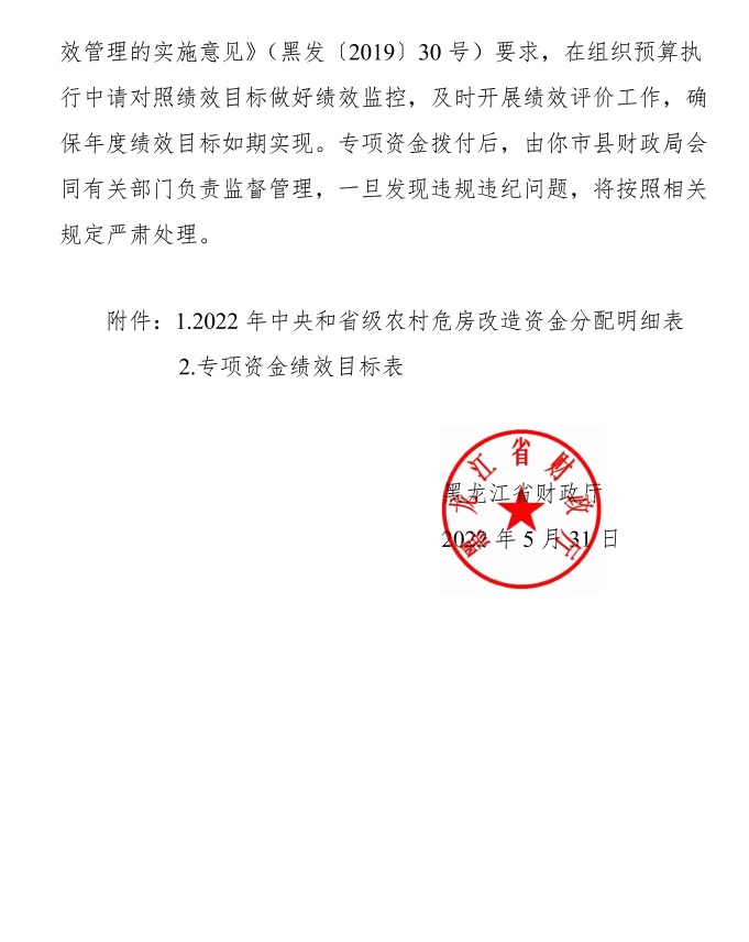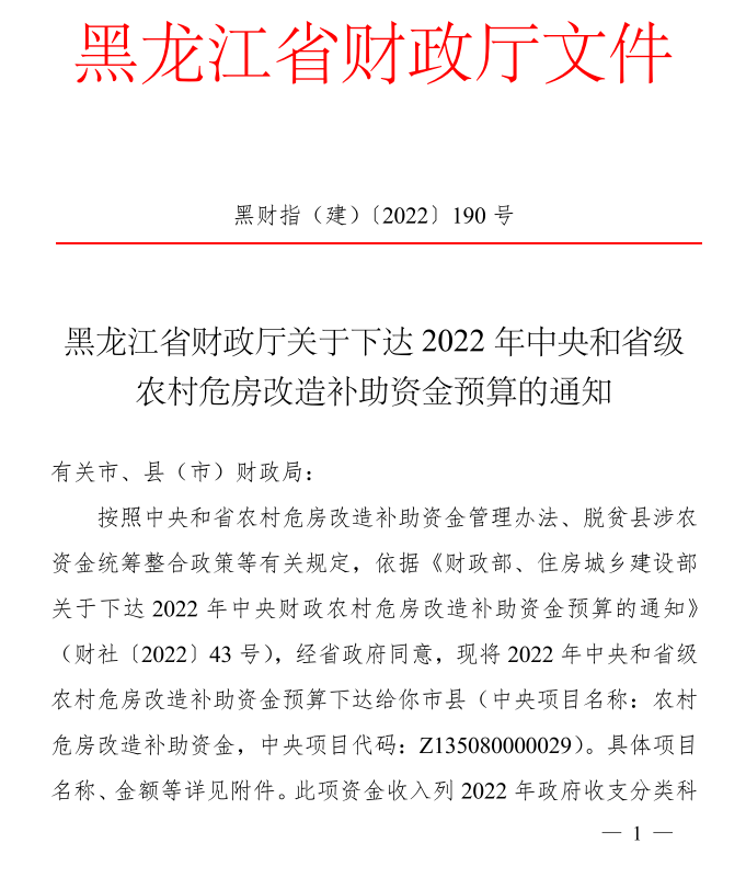 汤原县财政局现将《关于下达2022年中央和省级农村危房改造补助资金预算的通知》在政府网站进行公开公示。