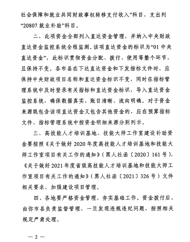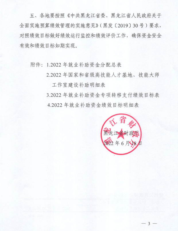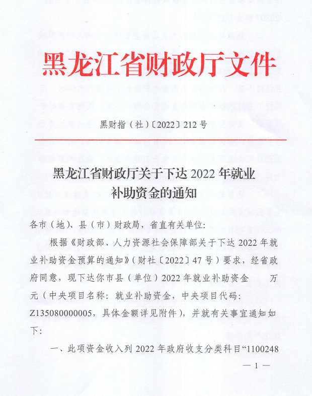 黑龙江省财政厅关于下达2022年就业补助资金预算指标的通知(黑财指社〔2022〕212号).pdf
