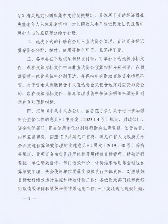 汤原县财政局现将《黑龙江省财政厅关于下达2023年中央财政困难群众救助补助资金(支持困难失能老年人基本养老服务救助方向)的通知》在政府网站进行公开公示。