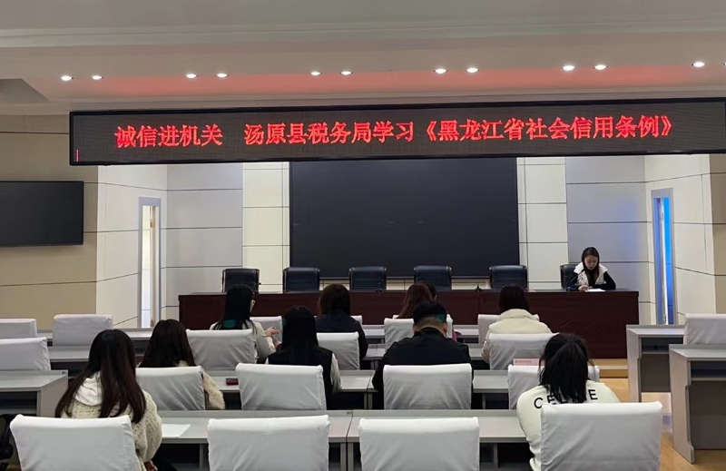 组织税务干部学习专题《黑龙江省社会信用条例》,积极引导工作人员树立诚信为民服务理念,努力实现“服务受理零推诿、服务方式零距离、服务质量零差错、服务结果零投诉”的工作目标。引导窗口工作人员牢固树立诚信、高效工作理念,加强工作人员诚信服务意识。