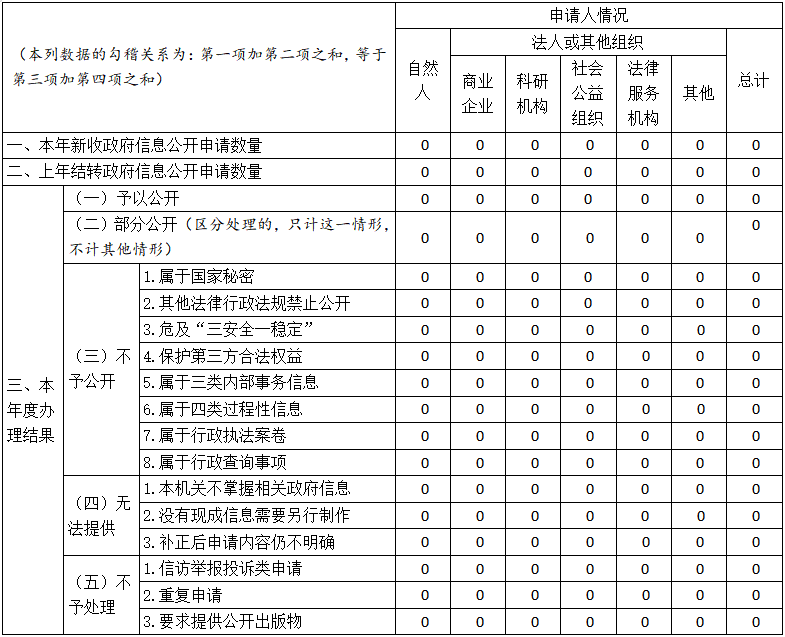 三、收到和处理政府信息公开申请情况