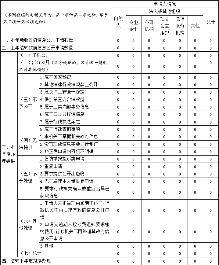 三、收到和处理政府信息公开申请情况
