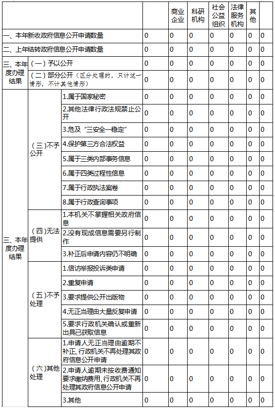 三、收到和处理政府信息公开申请情况