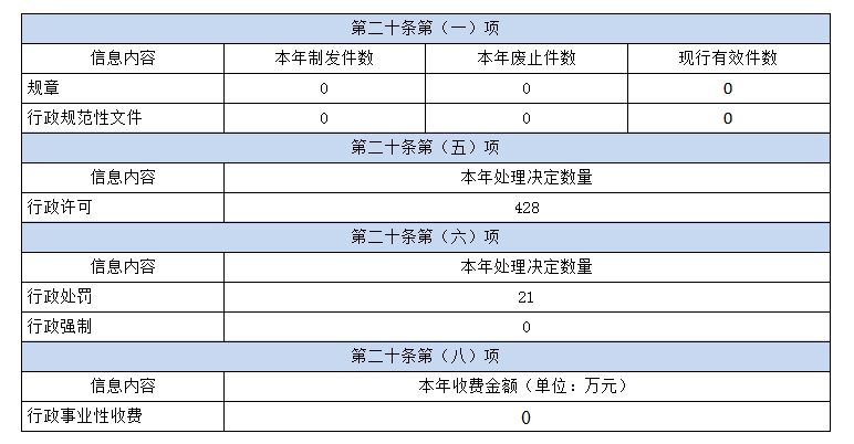 1.主动公开方面。我局积极做好政府信息公开工作,主动公开并及时更新机关职能、机构设置、办公地点、办公时间、联系方式等政府信息,2023年我局共主动公开8条信息。