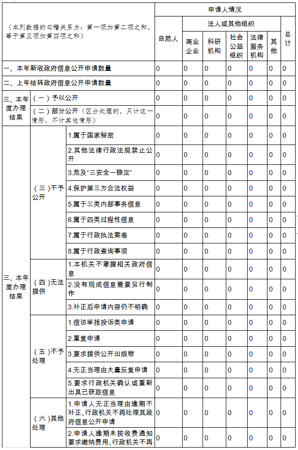 三、收到和处理政府信息公开申请情况