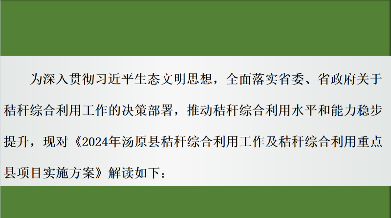 【图文解读】《2024年汤原县秸秆综合利用工作及秸秆综合利用重点县项目实施方案》