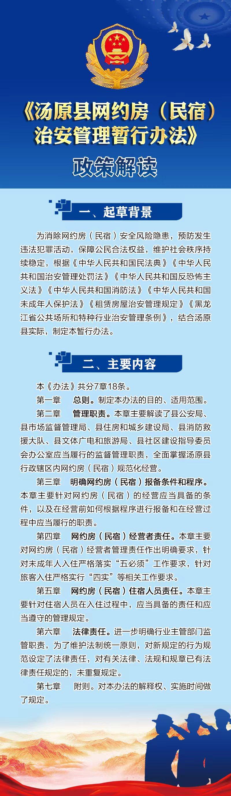 【图文解读】关于《汤原县网约房(民宿)治安管理暂行办法》政策解读